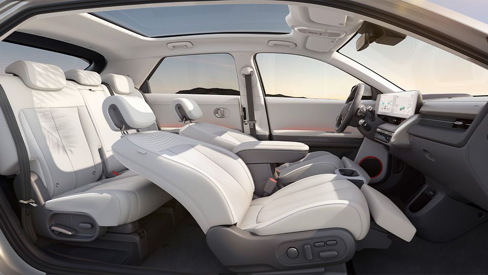 The Ioniq 5 is equipped with electronically adjustable Zero-Gravity front seats. The seats recline to the optimum angle, offering a weightless feeling for the occupant, hence the name. Hyundai reduced these front seats’ thickness by about 30%, providing more space for those seated in the second row. It allows passengers to customize the interior space according to different needs and situations.