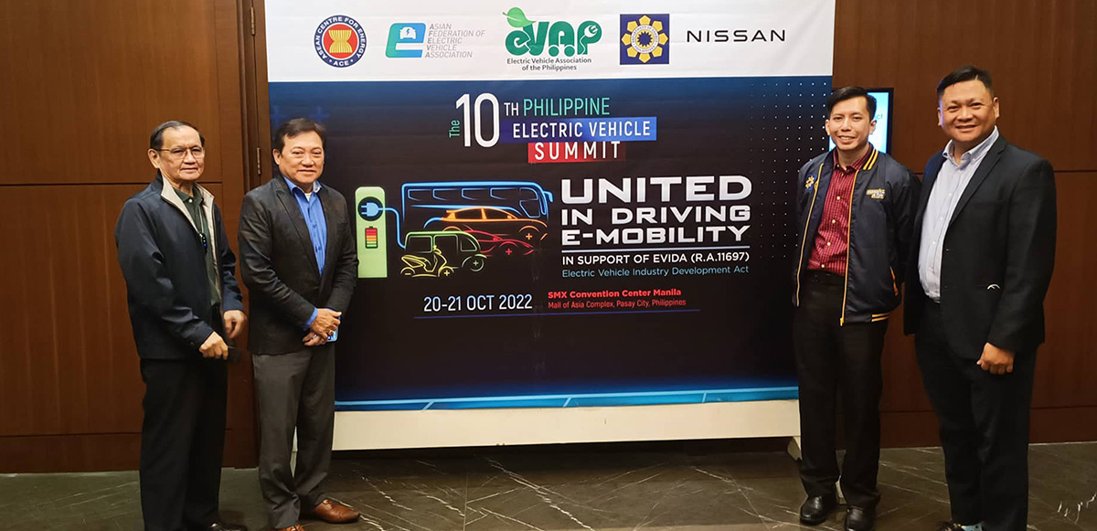 The Electric Vehicle Association of the Philippines (EVAP), together with the Manila Electric Company (Meralco), and in partnership with the Department of Energy (DOE) and Nissan Philippines Inc, is hosting the 10th Philippine Electric Vehicle Summit (PEVS) set on October 20 and 21, 2022 at the SMX Convention Center Manila.