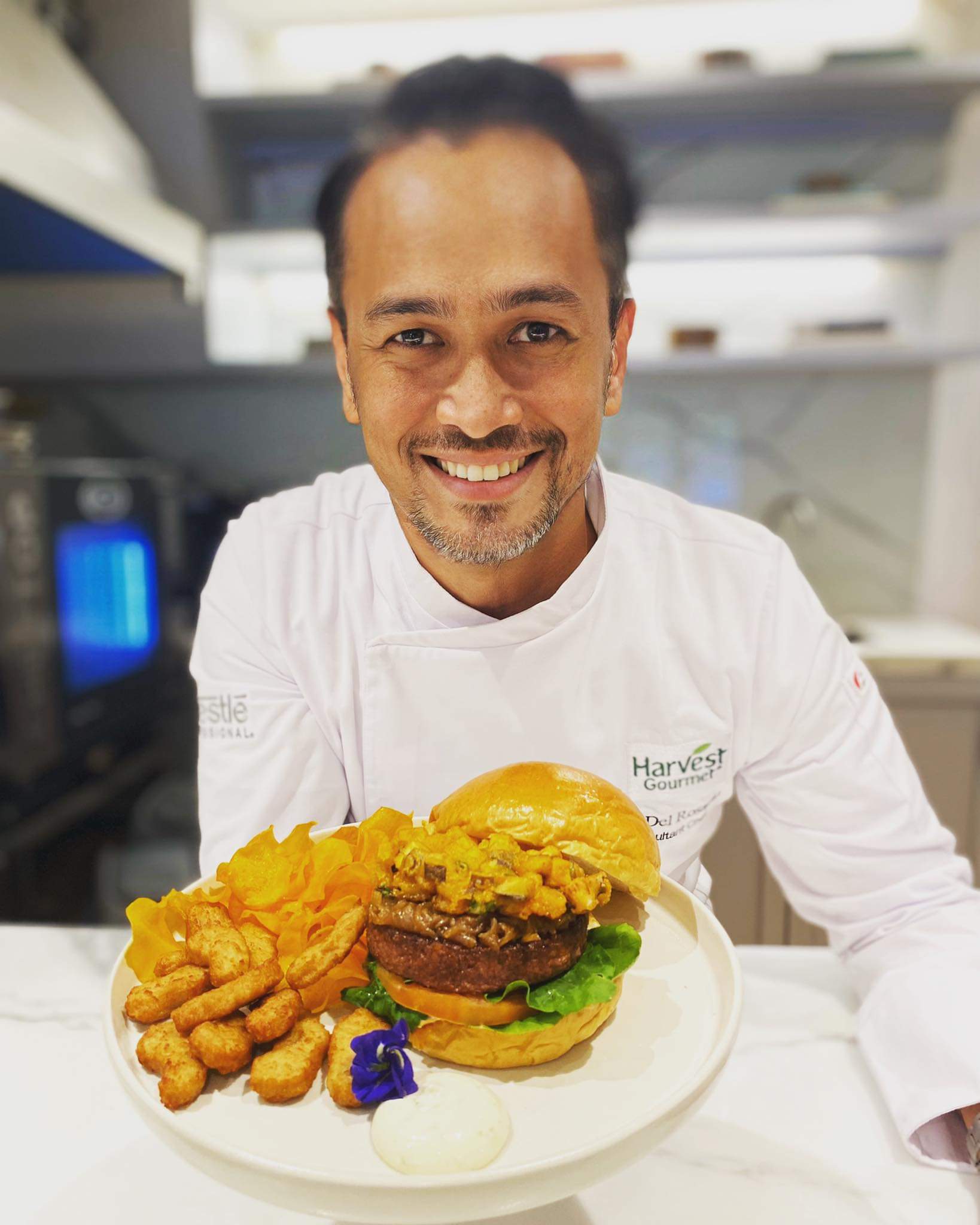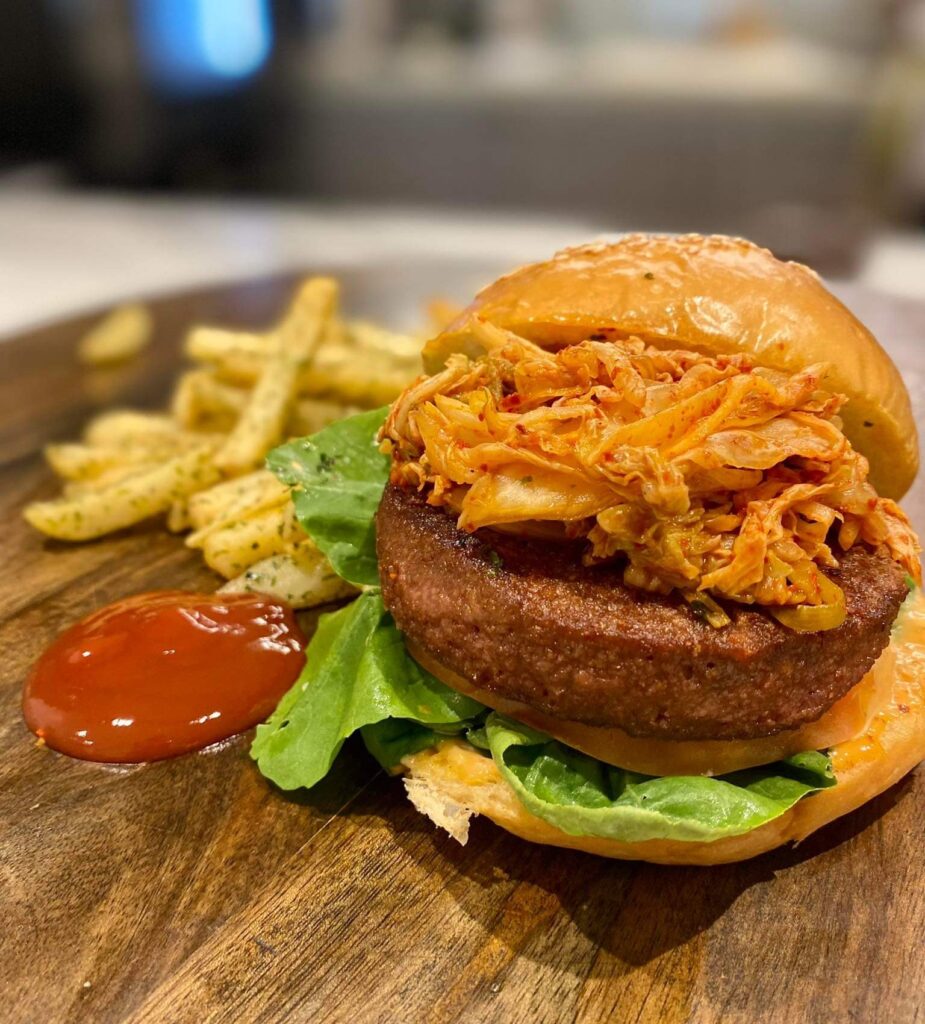 Chef Sau created a plant-based Adobo Burger with Pinakbet Okoy and Buffalo Wings with Calamansi Aioli and a Korean-inspired plant-based Burger with Ssam Jang, Kimchi and Nori flavored fries. The latter is currently available to order from his Cafe Fleur restaurant menu. These were made using Harvest Gourmet Sensational Burger and Chargrilled pieces.