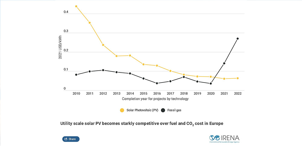 Irena’s new report confirms the critical role that cost-competitive renewables play in addressing today’s energy and climate emergencies by accelerating the transition in line with the 1.5°C warming limit and the Paris Agreement goals. Solar and wind energy, with their relatively short project lead times, represent vital planks in countries’ efforts to reduce swiftly and eventually phase out fossil fuels and limit the macroeconomic damages they cause in pursuit of net zero.
