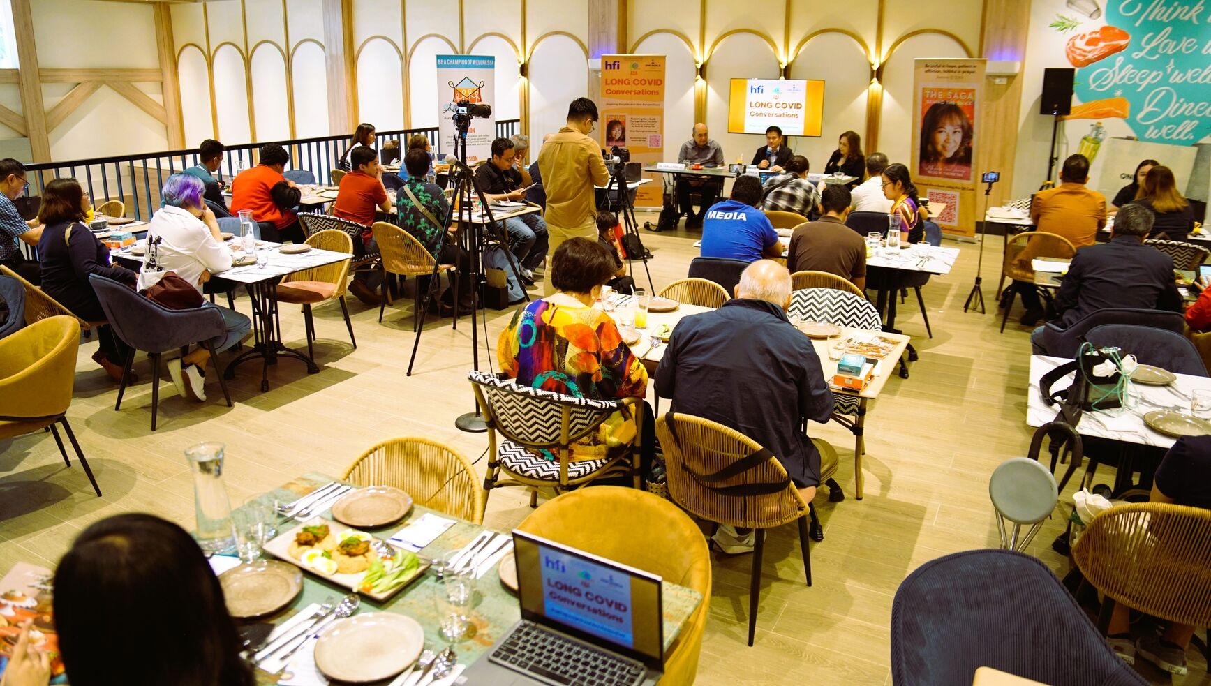 Banner image shows ‘Long Covid Conversations’ organized by HFI, which connects Long Covid patients with healthcare professionals and the public