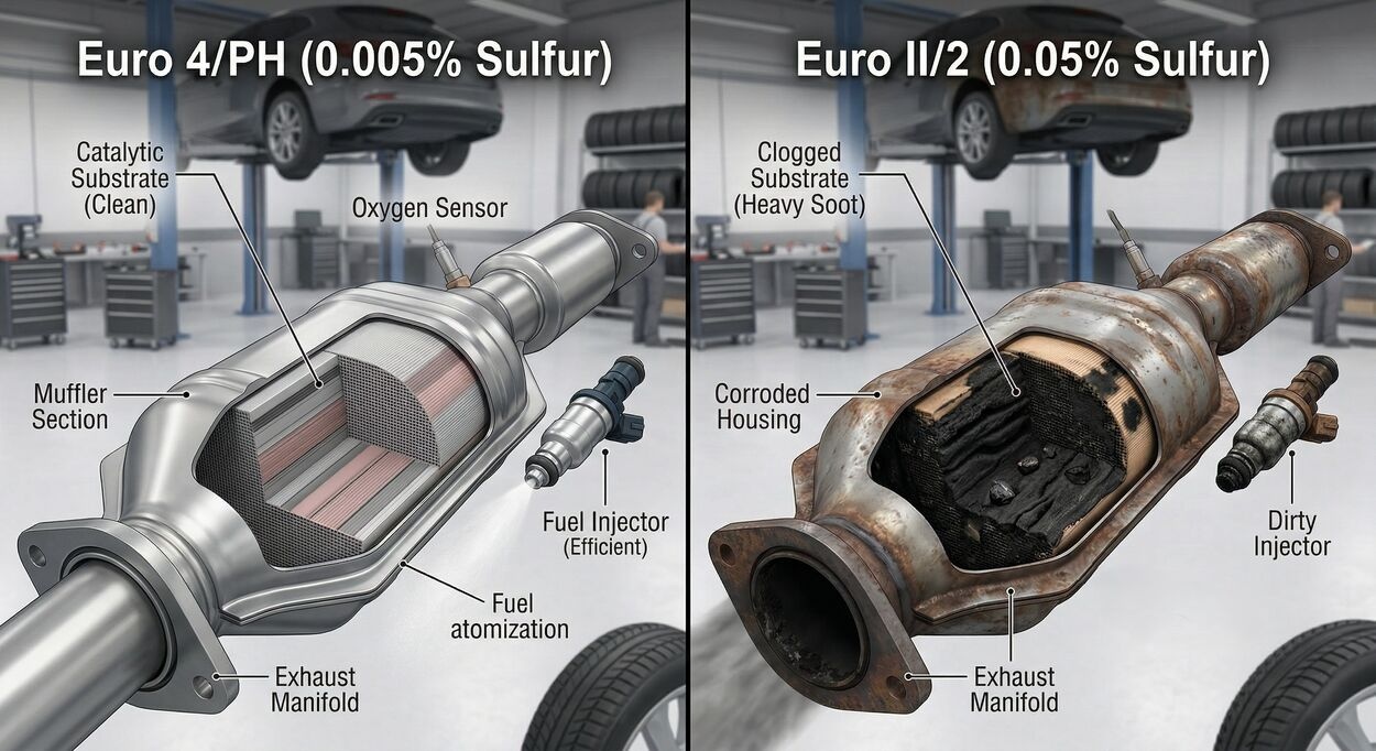 o Fuel system corrosion: Older fuel standards lack the sophisticated additives of Euro 4, leading to carbon buildup on fuel injectors.