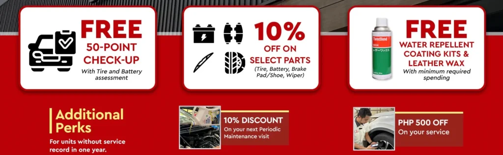 Owners of Honda vehicles with no service records in over a year can also enjoy additional perks such as a P500 discount on periodic maintenance or general repair service with a minimum spend of P2,000 and a 10% discount on periodic maintenance parts, lubes, and labor on your next visit.