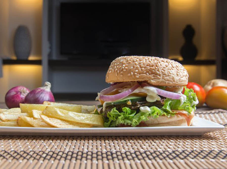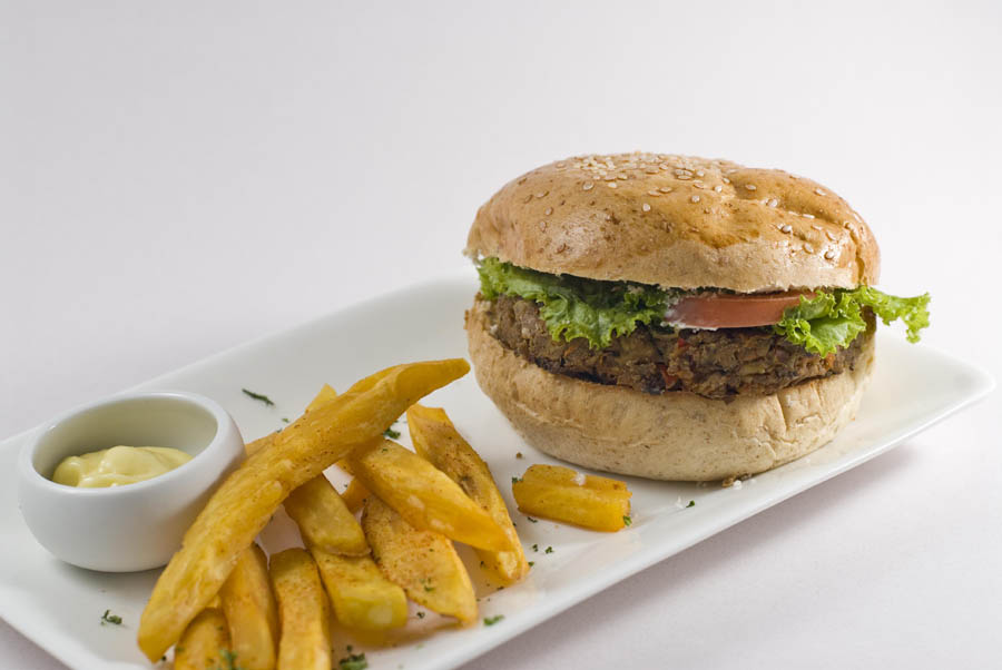 Lun-haw Vegan Café’s Vegan Burger (Cebu City), made with mung beans and potato, paired with a vegan sauce and all the trimmings, and served with a side of air-fried fries
