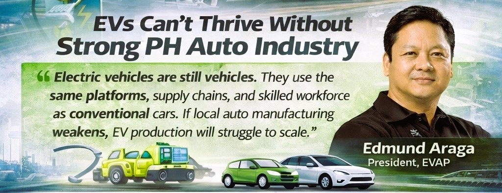 “Electric vehicles are still vehicles,” said EVAP president Edmund Araga. “They use the same platforms, supply chains, production facilities, and skilled workforce as conventional vehicles. If local automotive manufacturing weakens, EV production—local or otherwise—will struggle to scale.”
