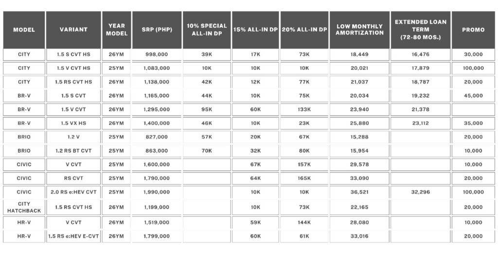 Learn more about the latest promotions and offers at https://www.hondaphil.com/promos.