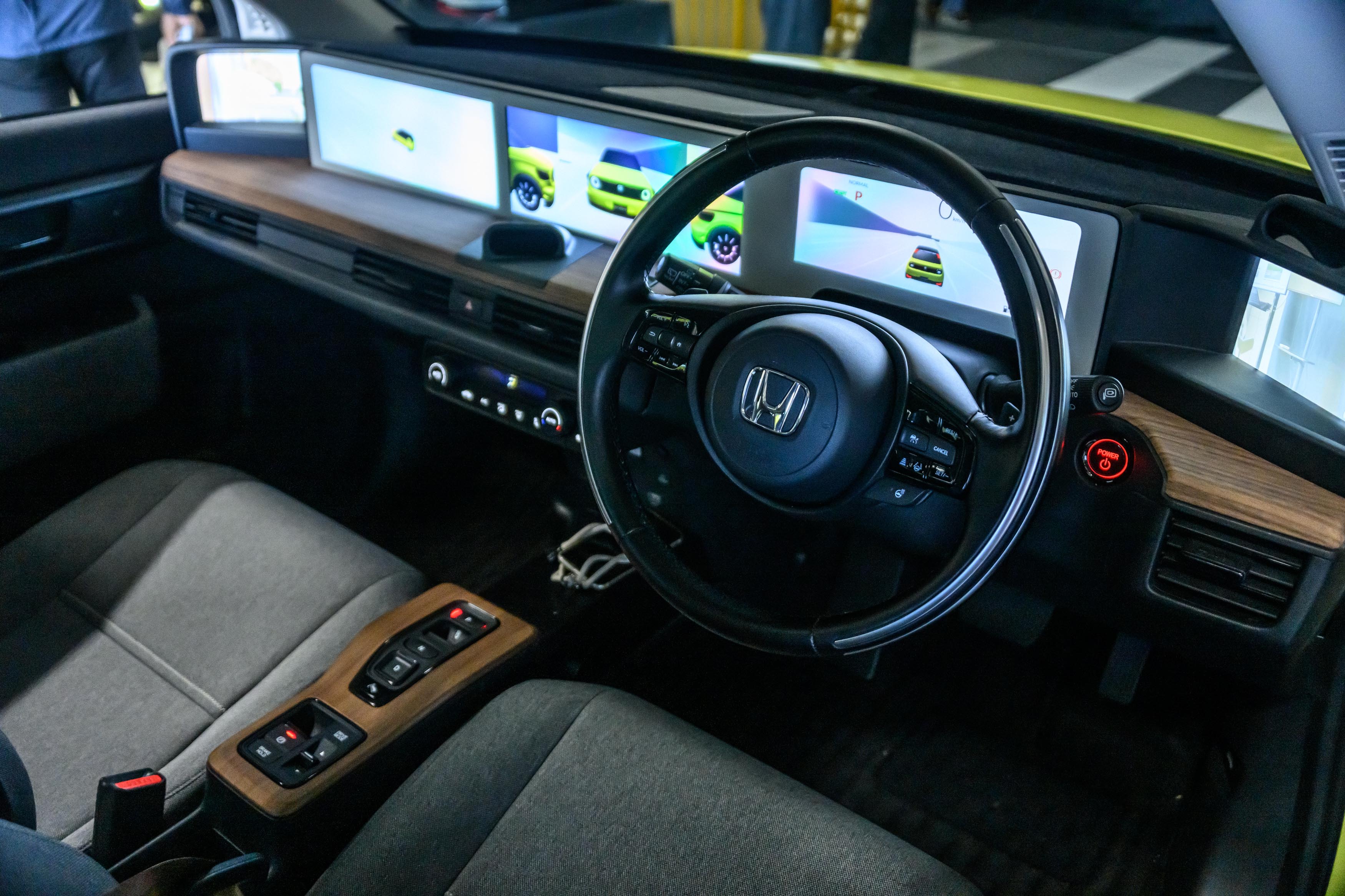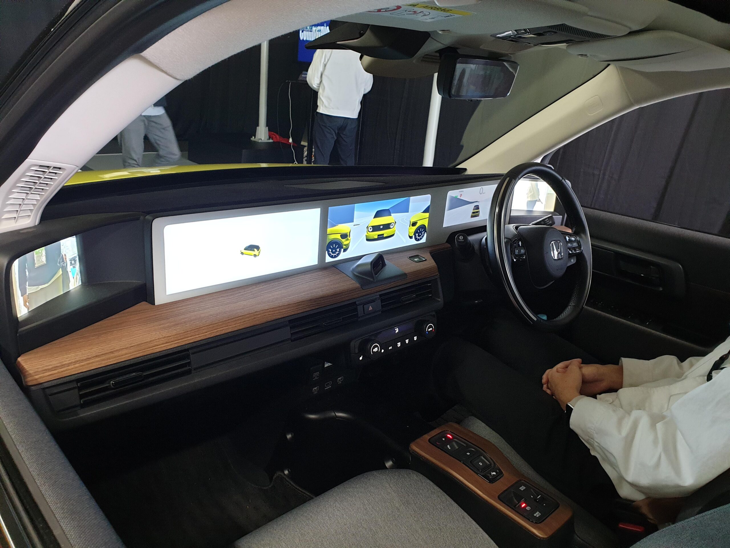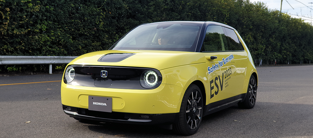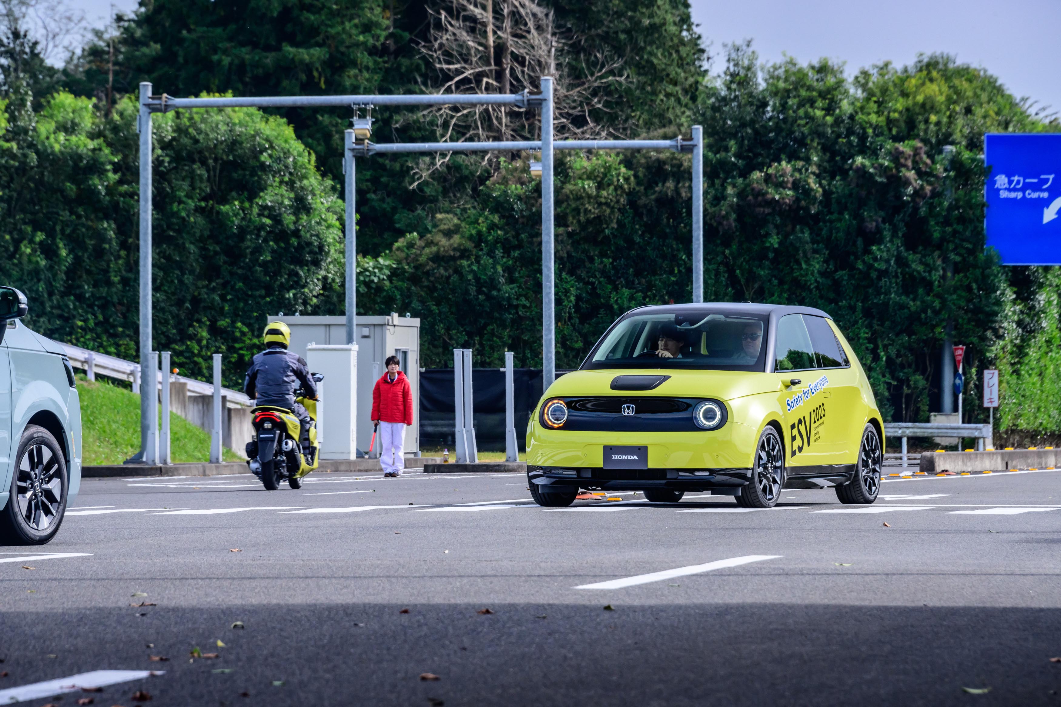 Next was onboard the ESV (experimental safety vehicle) Honda e: an all-electric car. Here, the technologies involving detecting the driver’s condition/state, system foresight/predictive, and synlogue-based HMI were fully demonstrated. During the series of driving situations, there was a voice prompt informing of a detected incoming motorcycle and a crossing pedestrian at an intersection. The system even prompted when it was safe to proceed. Then, in the following scenario, the system voice prompt successfully detected a child behind a vehicle and about to cross. As for the synlogue-based HMI, a camera is installed on the center dash to monitor the driver’s facial condition to detect the level of stress.