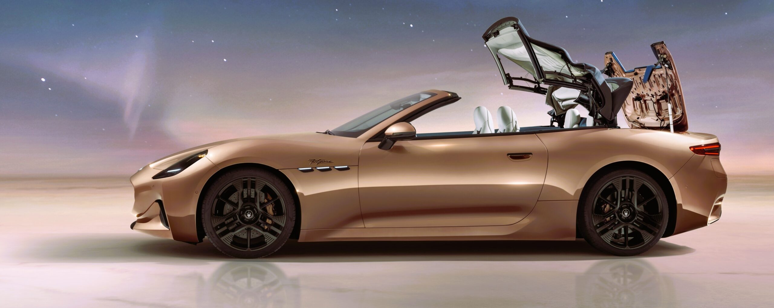 The GranCabrio Folgore is the world’s first all-electric luxury convertible, powered by an 800V architecture and triple-motor layout producing up to 761 hp and 1,350 Nm of torque. With a top speed of 290 kph and acceleration from 0 to 100 kph in just 2.8 seconds, it delivers unparalleled performance and silent, roof-down cruising—with seating for four and a fully retractable soft-top that opens in 14 seconds even while in motion.