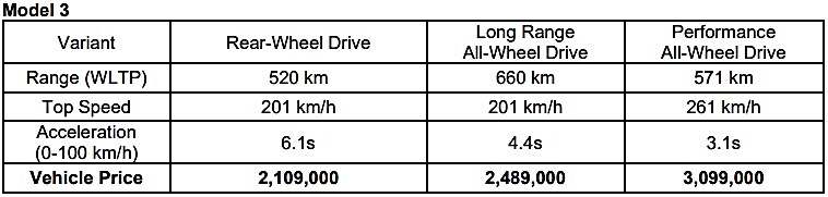 The Model 3 now comes with a new front-facing camera to offer enhanced visibility for greater safety and easier parking, providing a total of 8 cameras to support the vision-based system for Autopilot. In addition, Model 3 now features a traditional turn signal stalk for the ease and convenience of driving. The new matte-black badges at the front and rear hoods add a futuristic look to the vehicle. The Long Range All-Wheel Drive variant now features more range of up to 660kms, and the Performance now comes with up to 571km range.