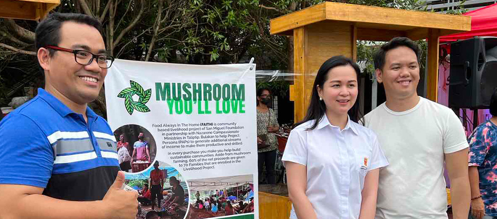 Earlier this year, San Miguel Corp (SMC) partnered with church organization Nazarene Compassionate Ministries (NCM) for a mushroom farming and processing project that has become a new income source for 70 families in Bulakan, in the province of Bulacan.