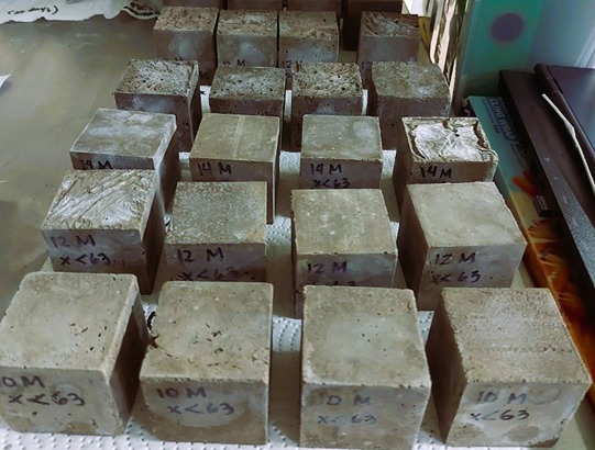 Photo above shows blocks of geopolymer mortar made from TVA freshly removed from their molds after being left to cure for 24 hours. It has been found that the natural presence of iron-rich minerals in TVA give it strong radiation-attenuation properties (Photo by Myris V. Supnad)