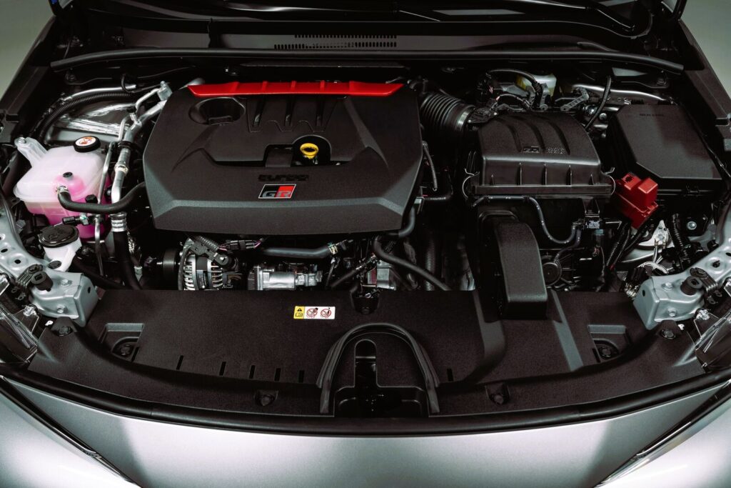Equipped with a 1.6 turbocharged G16E-GTS: 3-Cylinder, In-line, DOHC 4-Valve Roller-Rocker engine, the GR Corolla is an all-wheel drive packed with a max output of 300 PS and max torque of 400 Nm/3,250-4,600 rpm. It sports MacPherson Struts with coil springs for the front suspension, and Double Wishbone Suspension with coil springs for the rear.