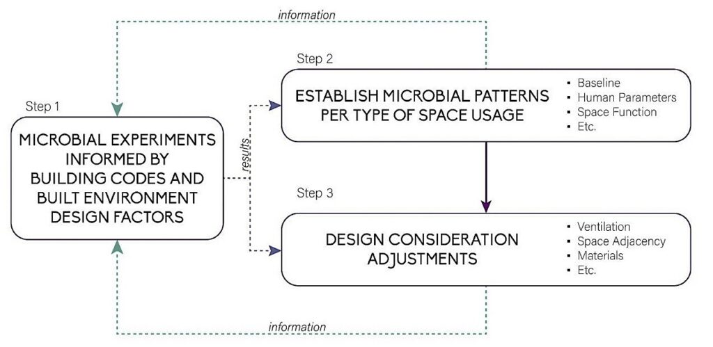 The study found that ventilation and the number of people in a space have a huge impact on the amount of indoor bacteria. A framework showing how microbial research can be done to produce data usable by architects and other designers for building design—similar to the experiments in the study—was developed by a team of architects, a microbiologist, and engineers led by Villoria, an architecture graduate.