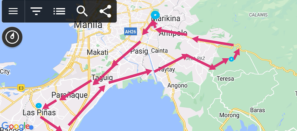 Aries returns to Rizal Province, but this time bound for the eastern fringe of Antipolo City, to a man-made lake on an abandoned quarry in Gitnang Pantay. For his return trip to Las Pinas City, Aries takes a detour to Marikina City via the rolling hills of Boso-Boso for a two-hour recharge of his e-bike at his sister’s place.