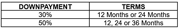 All brand-new 2.4 Tamaraw Dropside DSL M/T and A/T, and 2.4 Tamaraw Utility Van LWB DSL M/T purchased through financing with Toyota Financial Services Philippines are eligible for zero-percent interest at the following downpayment options: