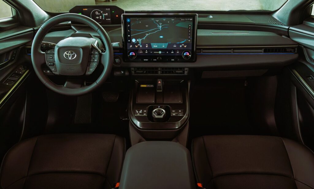 For functionality, the bZ4X has a 7-inch digital meter cluster and multi-information display, 14-inch display audio with wireless Apple CarPlay and Android Auto, dual wireless charging ports in front, and USB Type C chargers in the front and rear.